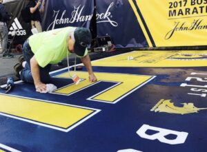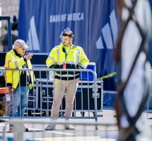 2024 Peppi installing the Boston Marathon finish-line ( Photo credit Nicole Bolognese)