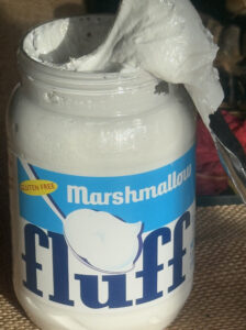 The stuff of Fluff’s marshmallow yumminess is a whip of sugar, egg whites, corn syrup and vanilla-ish extract. Spread on white bread with peanut butter the fluff-a-licious-ness of the combo is a Massachusetts legend. Rightfully, Fluff holds a place in our personal memory banks and American history.